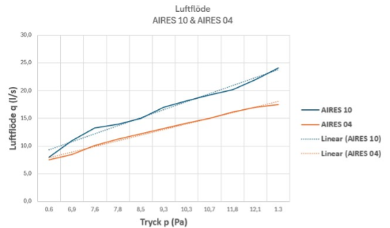 AIRES fönsterventiler är de enda tilluftsventiler på marknaden som klarar Socialstyrelsens krav för kastlängd i bostäders vistelsezon. 60 cm in från ventilen har lufthastigheten sjunkit lång under riktvärdet på 0,15 m/s vinter och 0,25 m/s sommar. Den inkommande kalla luftens hastighet minskar med den stora arean och styrdelen och därmed minimeras luftens kastlängd avsevärt. Detta bidrar till en god termisk komfort enligt ISO 7730 Standard.